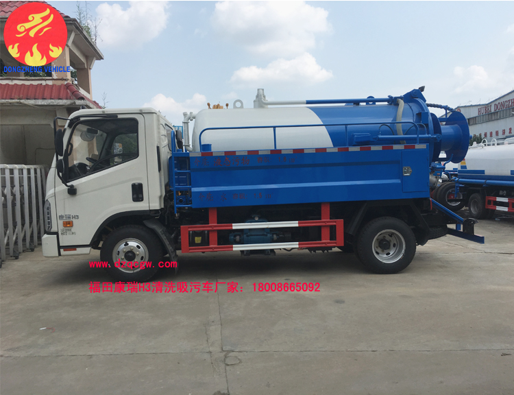 底盤說明:康瑞單排前翻駕駛室,3360mm軸距,全柴115馬力國五發動機,5檔,7.00R16鋼絲胎,動轉、ABS。罐體外形尺寸(直段長×直徑)(mm):3200×1350(其中罐體前部1200mm為清水罐).污水罐介質:液態污物,密度800千克/立方米,載質量2100kg,罐體有效容積2.75立方米.清水罐介質:水,密度1000千克/立方米,載質量1500kg,罐體有效容積1.57立方米.兩罐不能同時滿載。 |