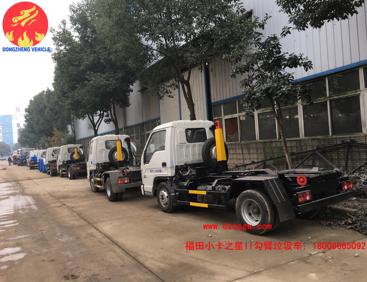 1、國五福田小卡之星二3方勾臂式垃圾車,全柴68馬力柴油發動機,帶液壓系統,帶駕駛室內操作。