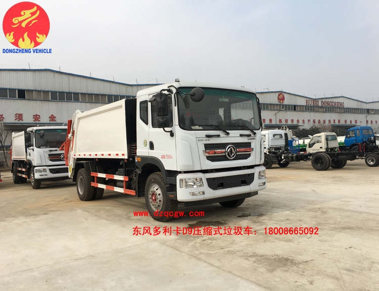 5、東風大多利卡D9壓縮式垃圾車,有效容積10-12方,3950或4500mm,配備康明斯發動機。
