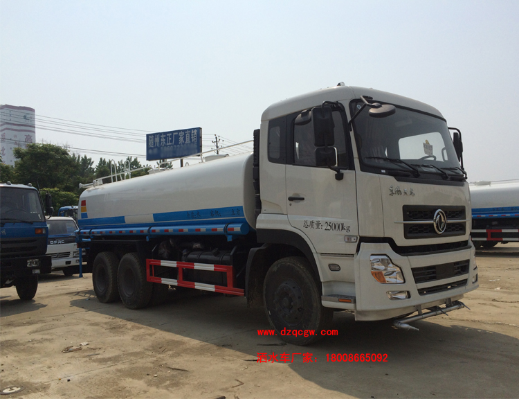 底盤說明:東風天龍排半標準駕駛室,6X4驅動,4350+1300mm軸距,康機245馬力柴油共軌國四發(fā)動機,7噸前橋,10噸單級減速雙后橋,陜齒8檔變速箱,10.00R20鋼絲胎,帶空調,ABS,行車記錄儀。罐體有效容積:14.7立方米。 專用功能:該多功能灑水車適合于各種路面的灑水、噴霧、降溫、除塵、沖洗塵埃臟物,亦可用于園林綠化、市政環(huán)衛(wèi)、路面養(yǎng)護及應急消防、運輸飲用水等。專用部分由罐體、水泵、球閥、輸水管道、灑水裝置等部件組成。水泵、取力箱、球閥均為國家定型產品,具有性能良好,工作可靠、壓力高、流量大、油耗低等特點。 改裝部分:標配前沖、后灑、側噴、工作平臺、綠化高炮、自流閥、消防接口,輸水管3米2根,8噸以上罐體帶高位花灑2個,億豐泵或金龍泵,控制方式為手動。選裝氣動閥門控制;高位花灑,大鴨嘴,藥盤,罐體側面加裝萬向可調節(jié)噴頭,罐體后部壓塵噴灑裝置,兩個圓警燈或長警燈,LED箭頭燈,泵可選裝威龍泵或農藥噴霧裝置。 |