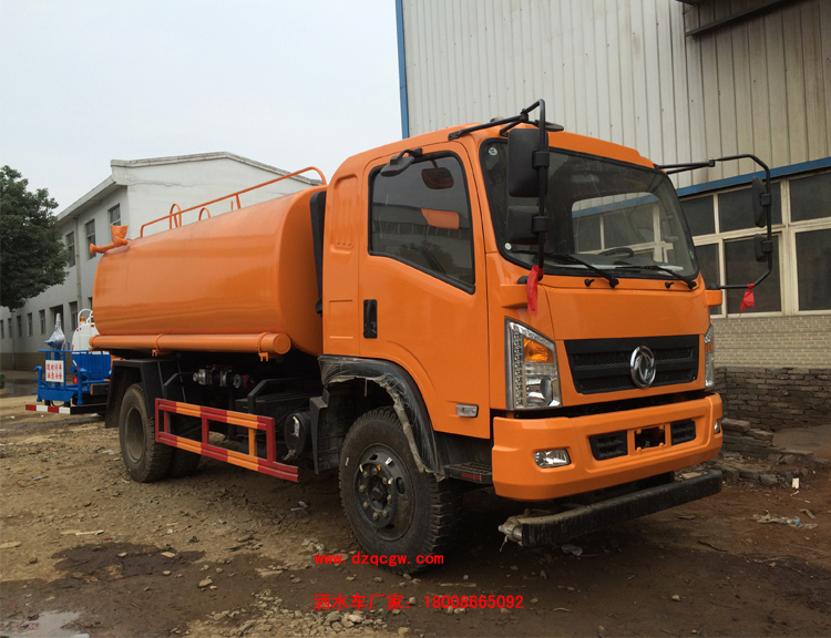 底盤說明:東風多利卡D9駕駛室,康明斯國四發動機,軸距3950mm或4500mm。罐體有效容積:10立方米。 專用功能:該多功能灑水車適合于各種路面的灑水、噴霧、降溫、除塵、沖洗塵埃臟物,亦可用于園林綠化、市政環衛、路面養護及應急消防、運輸飲用水等。專用部分由罐體、水泵、球閥、輸水管道、灑水裝置等部件組成。水泵、取力箱、球閥均為國家定型產品,具有性能良好,工作可靠、壓力高、流量大、油耗低等特點。 改裝部分:標配前沖、后灑、側噴、工作平臺、綠化高炮、自流閥、消防接口,輸水管3米2根,8噸以上罐體帶高位花灑2個,億豐泵或金龍泵,控制方式為手動。選裝氣動閥門控制;高位花灑,大鴨嘴,藥盤,罐體側面加裝萬向可調節噴頭,罐體后部壓塵噴灑裝置,兩個圓警燈或長警燈,LED箭頭燈,泵可選裝威龍泵或農藥噴霧裝置。 |
