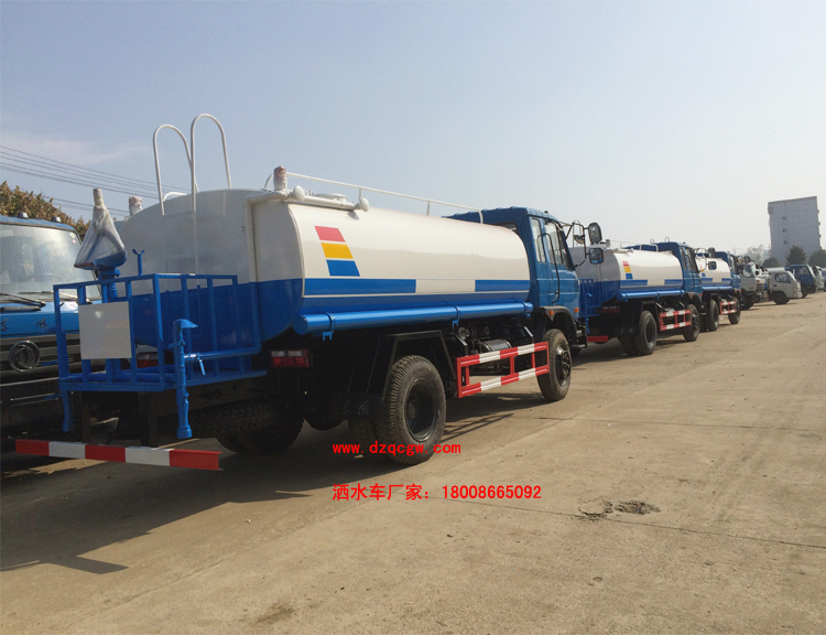 底盤說明:東風153豪華內飾,3950與4500mm軸距,寬體保險杠,電動玻璃,法斯特小八檔變速箱,玉柴或康機發動機,300雙層大梁(局部三層),前橋5噸,后橋10噸,加厚鋼板9.00-20,動力轉向,斷氣剎。軸距/外形長(mm):8200/4500,7350/3950一一對應。罐體有效容積:9.5立方米。 專用功能:該多功能灑水車適合于各種路面的灑水、噴霧、降溫、除塵、沖洗塵埃臟物,亦可用于園林綠化、市政環衛、路面養護及應急消防、運輸飲用水等。專用部分由罐體、水泵、球閥、輸水管道、灑水裝置等部件組成。水泵、取力箱、球閥均為國家定型產品,具有性能良好,工作可靠、壓力高、流量大、油耗低等特點。 改裝部分:標配前沖、后灑、側噴、工作平臺、綠化高炮、自流閥、消防接口,輸水管3米2根,8噸以上罐體帶高位花灑2個,億豐泵或金龍泵,控制方式為手動。選裝氣動閥門控制;高位花灑,大鴨嘴,藥盤,罐體側面加裝萬向可調節噴頭,罐體后部壓塵噴灑裝置,兩個圓警燈或長警燈,LED箭頭燈,泵可選裝威龍泵或農藥噴霧裝置。 |
